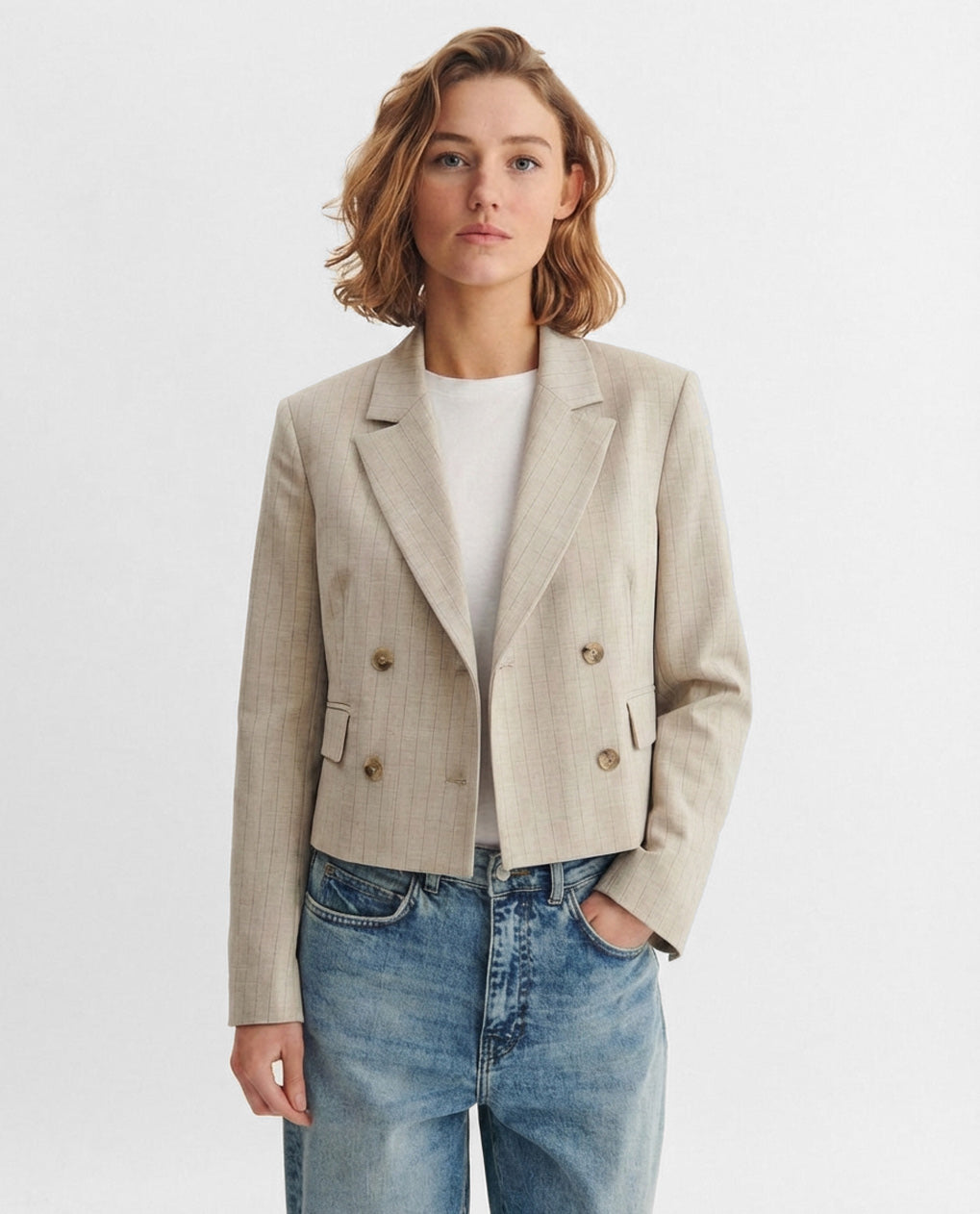 הז'קט הזה כל כך מדבר בעד עצמו אבל ננסה בכל זאת לתאר את השלמות הזאת. מחוייט, קצר, כתפיים מודגשות, היסטרי.