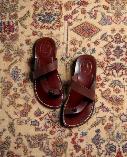 סנדלי עור מדגם מגרב של המותג FEZ עשויים בארץ בעבודת יד. דגם זה של סנדלים היה נפוץ באיזור אגן הים התיכון וארצות המגרב כבר מאות שנים. סנדל מגיע בשחור ובחום עם תיפורים לבנים קונטרסטיים והטבעה. זהו דגם יוניסקס. כל סנדל נתפר ונצבע ביד ולכן יתכנו הבדלים קטנים בין הזוגות. קבלו אותם באהבה.