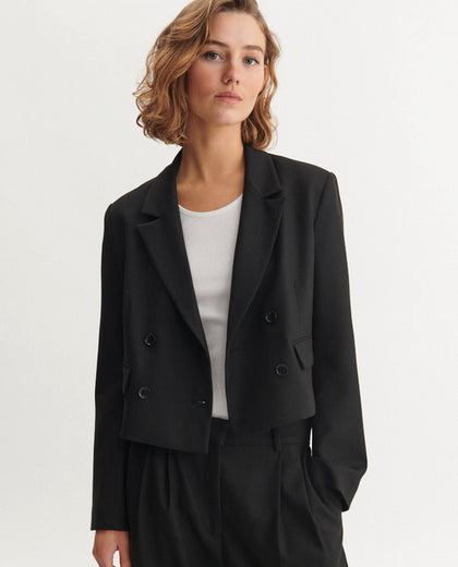 הז'קט הזה כל כך מדבר בעד עצמו אבל ננסה בכל זאת לתאר את השלמות הזאת. מחוייט, קצר, כתפיים מודגשות, היסטרי.