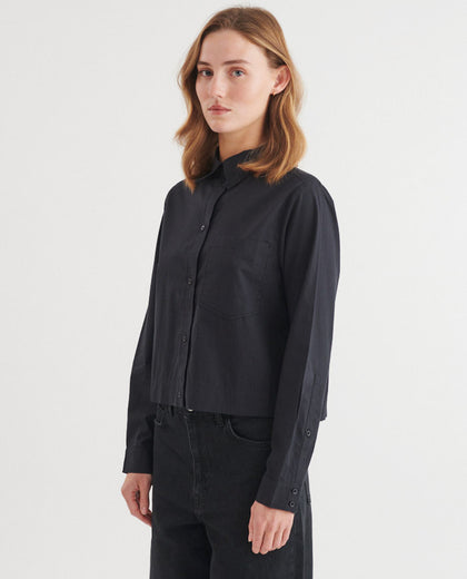 חולצה מכופתרת משובחת בגזרת קרופ שבכוונתנו לחרוש עליה כל החורף. השאלה איך לבחור בין שחור ללבן?