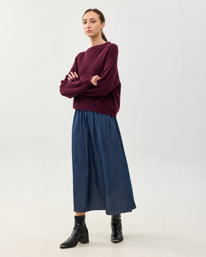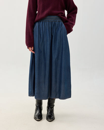 חצאית מידי בגזרת A עם כיסי צד וגומי במותן. עשויה בד טנסל איכותי ומתאפיינת במראה נשפך. הבד הטבעי מעניק לחצאית תחושה קלילה ונעימה.