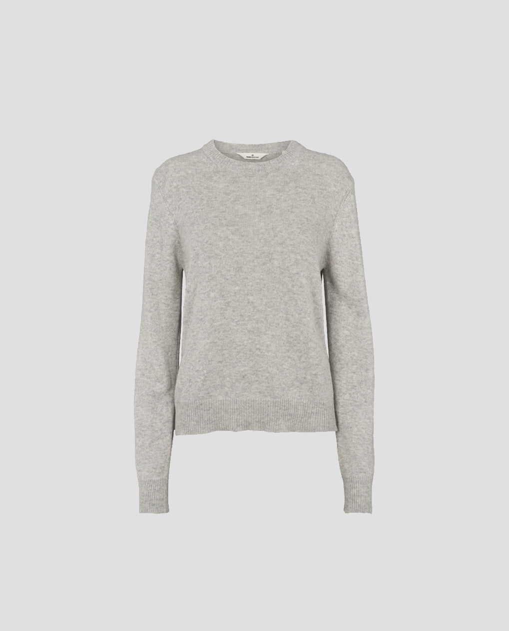 סוודר קלאסי ומשובח עם צווארון עגול, עשוי בלנד של צמר, קשמיר ופולי ממוחזר. רך ואקולוגי, מגיע באפור כהה ובורדו