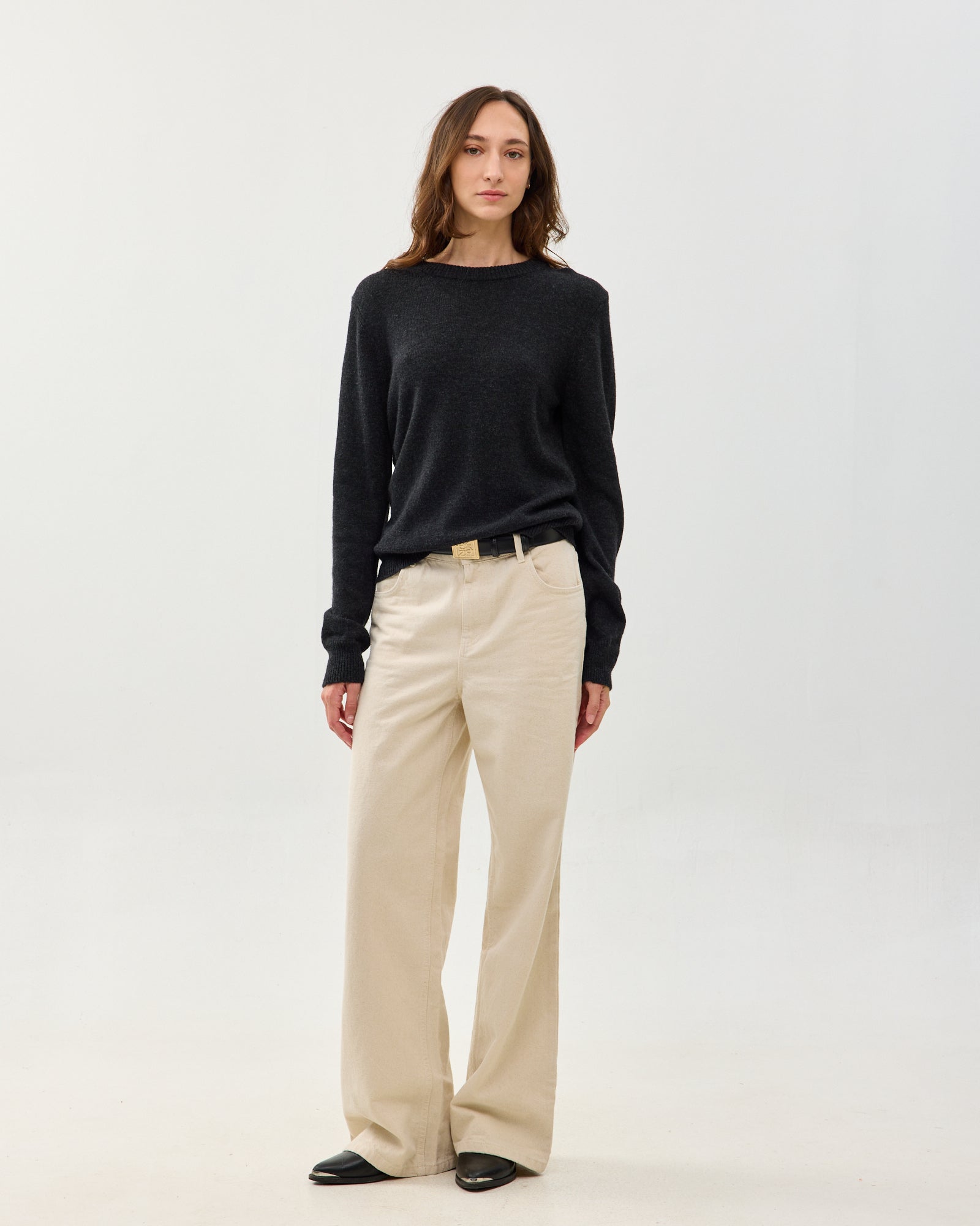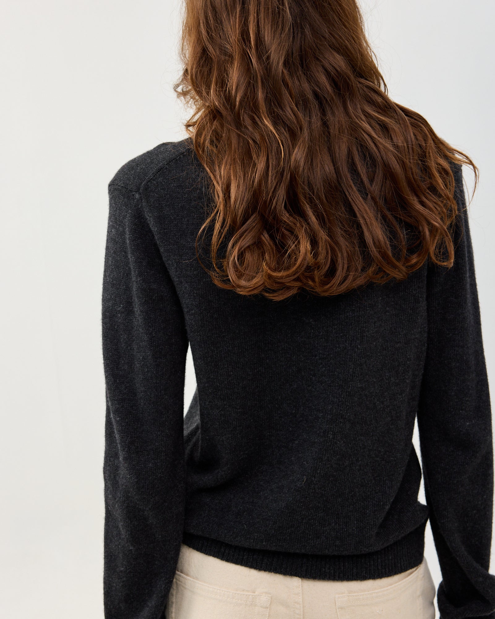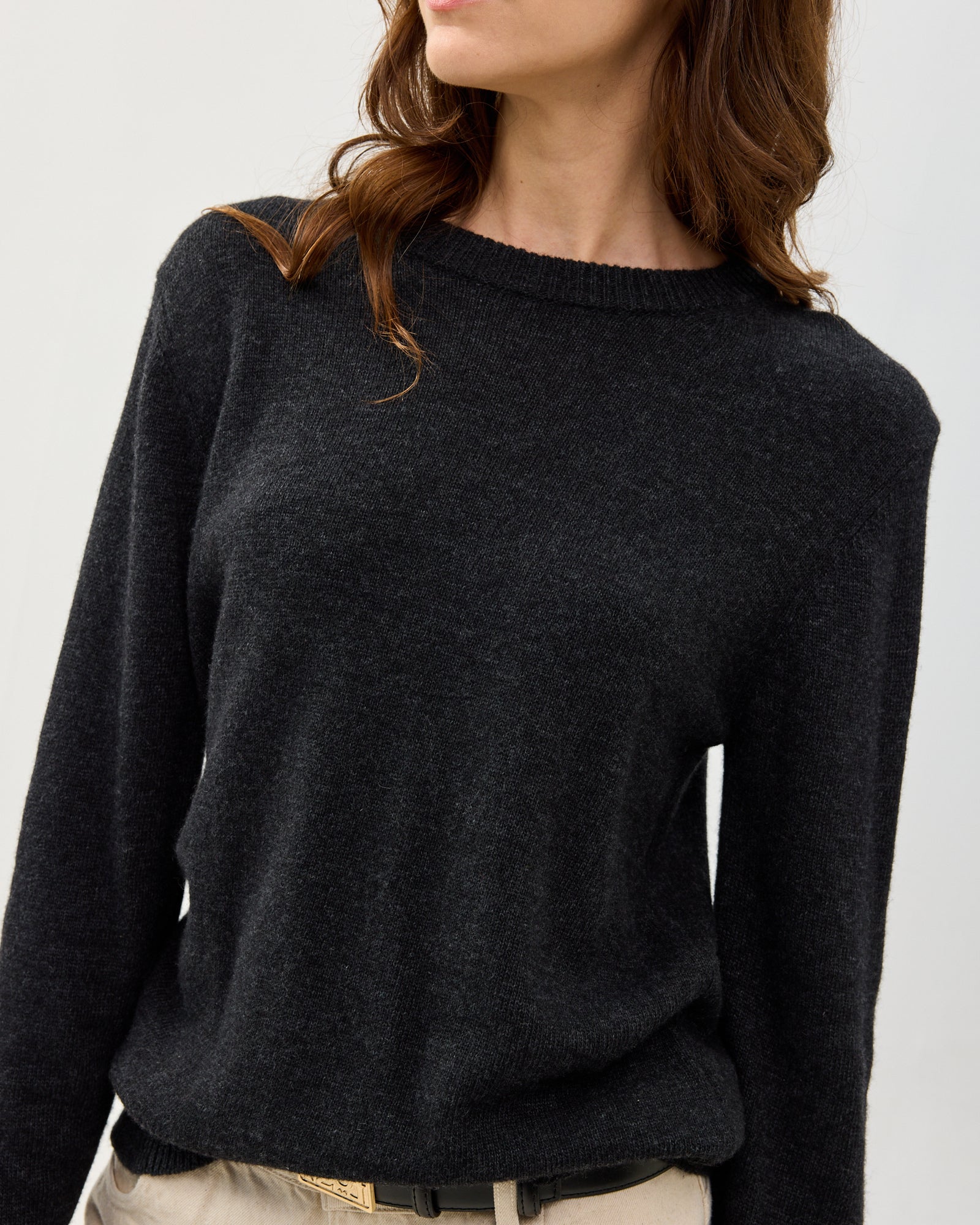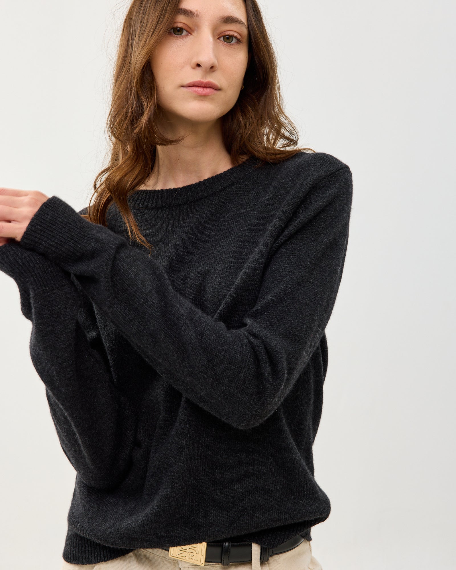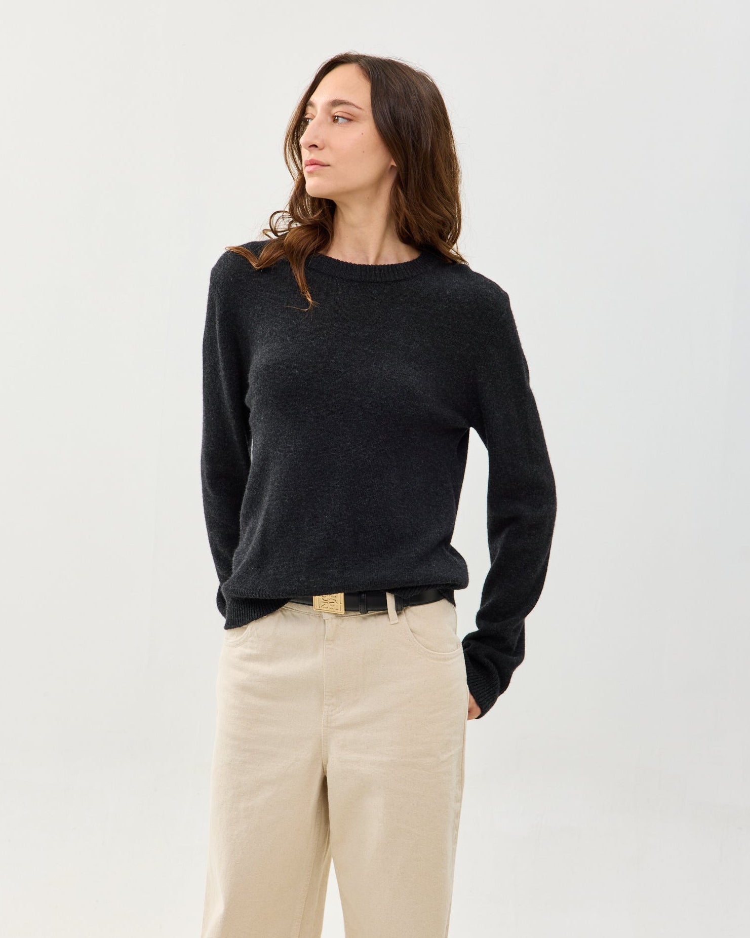 סוודר קלאסי ומשובח עם צווארון עגול, עשוי בלנד של צמר, קשמיר ופולי ממוחזר. רך ואקולוגי, מגיע גם באפור בהיר ובורדו