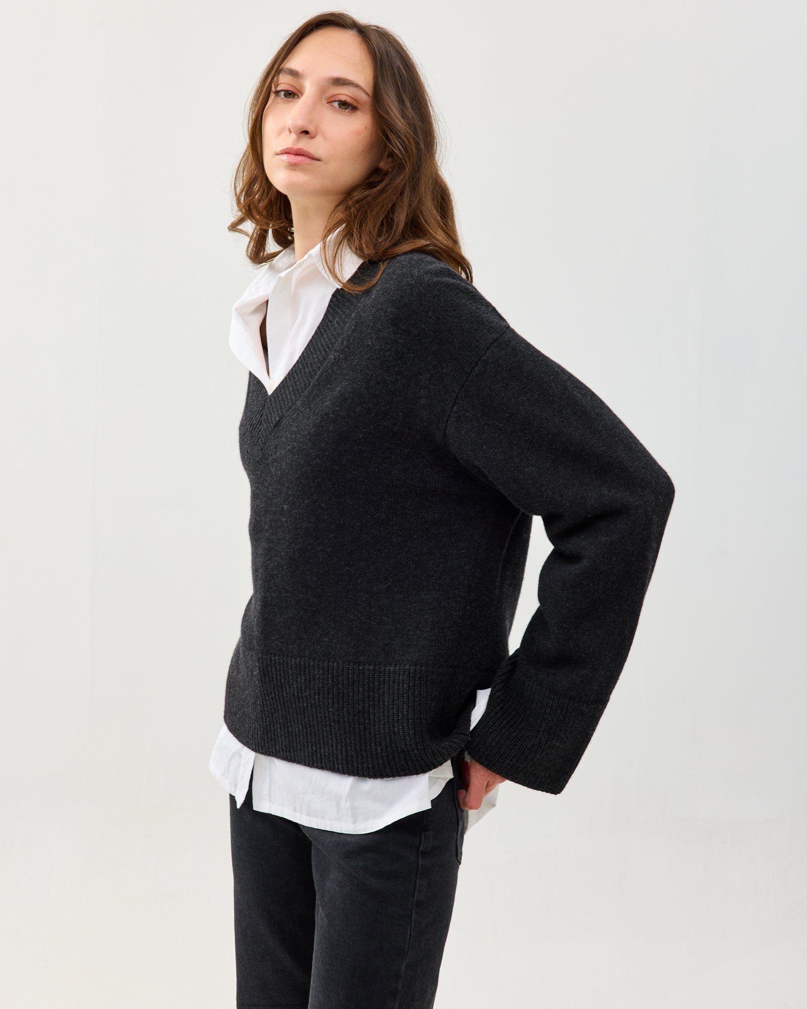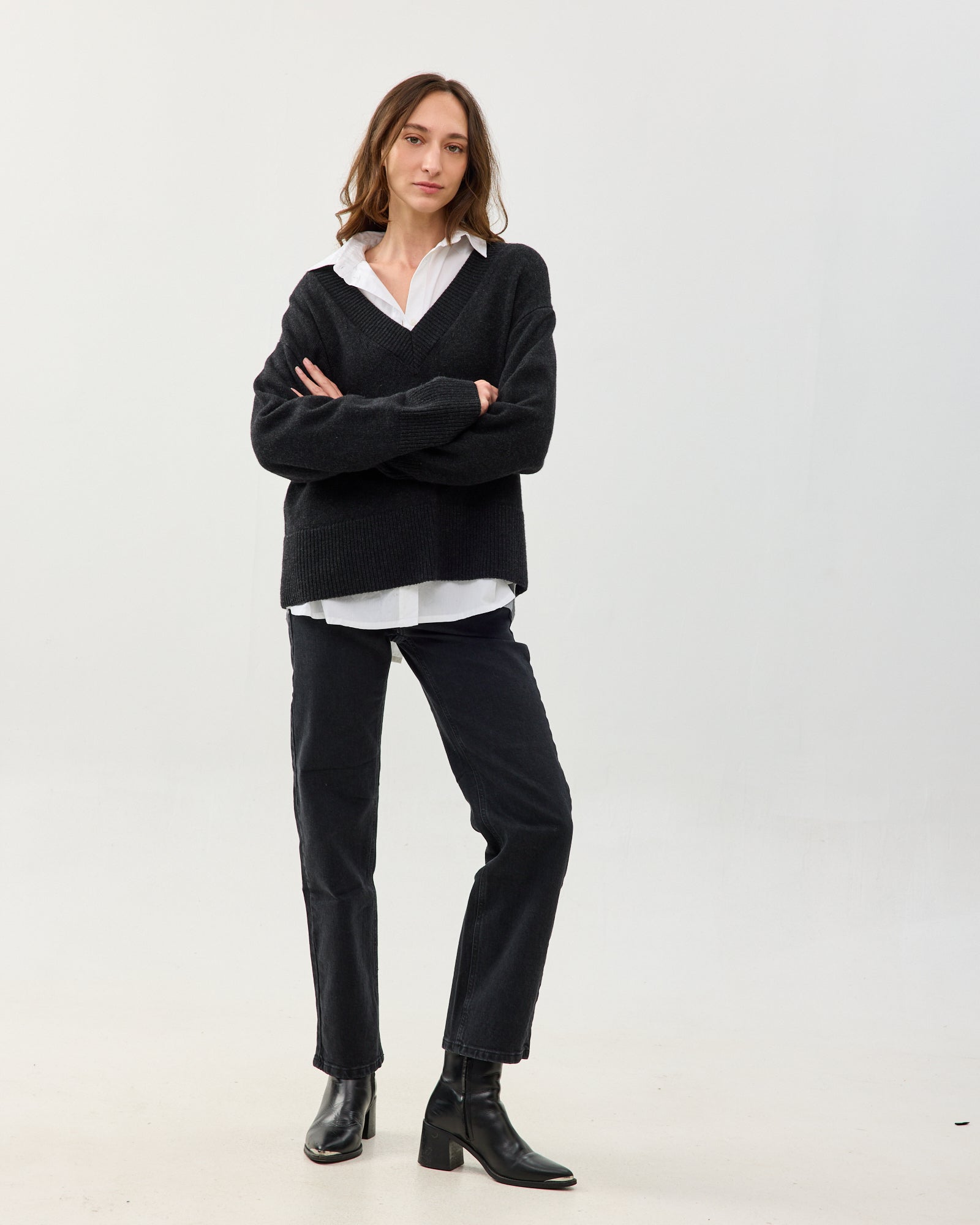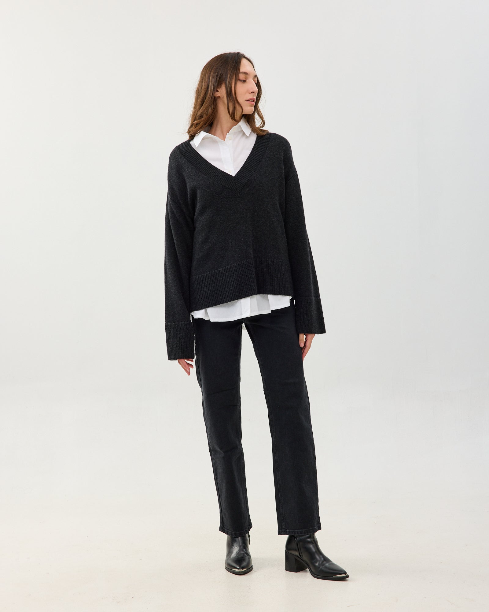 סריג מושלם רחב ואוברסייז שאפשר ללכת איתו כשכתף אחת חשופה, עשטע שילוב של כותנה, צמר וקשמיר, זה אחד המשובחים שיהיו לך בארון.