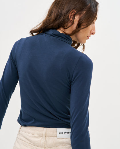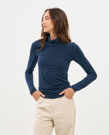חולצת גולף עם שרוול ארוך עשויה בד טנסל איכותי, גזרה צמודה לגוף. הגולף מגיע בצבעים: שחור, כחול נייבי וירוק