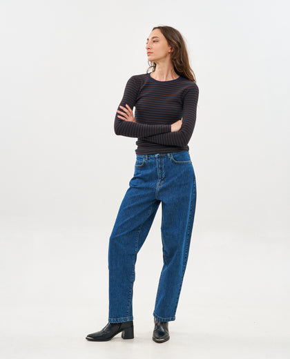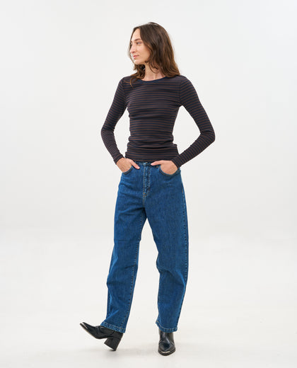 תכירו את EA הג'ינס החדש שלנו עם שטיפת קלאסית הורסת, גזרה מעט בלונית לא גבוה ולא נמוך יושב בגובה אמצע, אורך קרסול, נוח בטרוף וכמובן עשוי כותנה אורגנית.