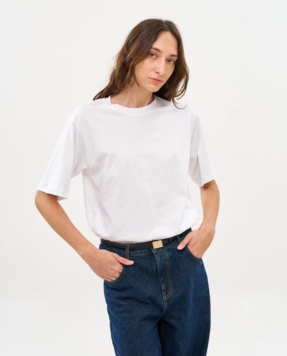 חולצת טי בגזרה משוחררת עם שרוולים מעט ארוכים עשויה כותנה אורגנית, זאת גזרה משגעת ואנחנו אוהבות אותה מאד. זמינה בשלושה צבעים: לבן, שחור ואפור