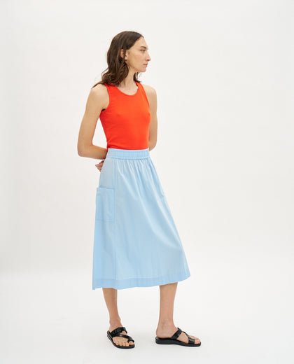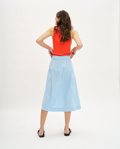 חצאית מידי בגזרת A עם כיסי צד וגומי במותן. והצבע, וואו הצבע.