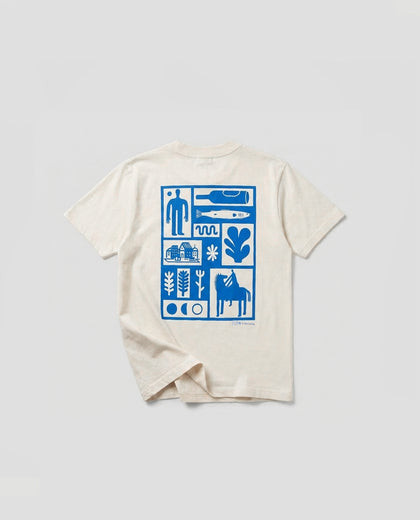 טישרט בגזרת יוניסקס מכותנה אורגנית. קראנו לטישרט essentials - כל מה שבן אדם צריך, קצת דגים, קצת יין, קצת בית וקצת סוס :) שימו לב לרקמה העדינה מקדימה