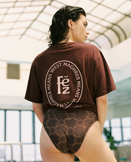 דגם בלעדי של מותג הבית שלנו FEZ. טישרט הדפס לוגו בגב.  גזרה יוניסקס עשויה כותנה אורגנית