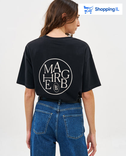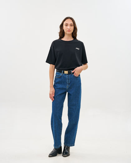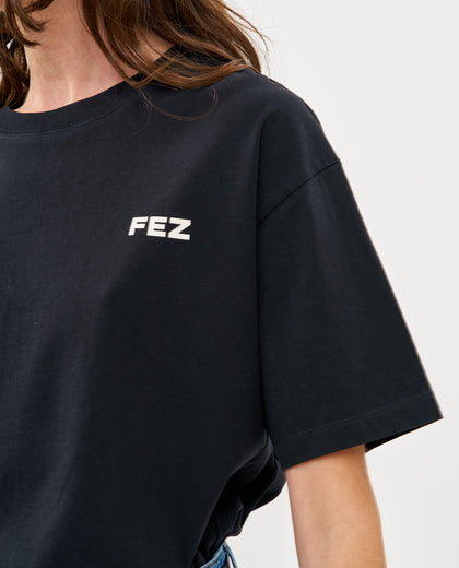 טישרט מתוך הקולקציה החדשה של FEZ, גזרת יוניסקס משוחררת, לוגו קטן מקדימה והדפס טיפוגרפי בגב