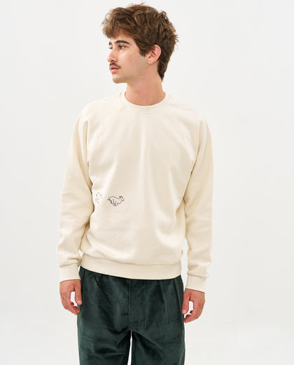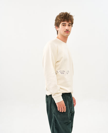 סווטשירט בגזרת יוניסקס עם רקמה של כבשים רצות שחוצות אותו