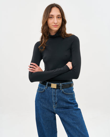 חולצת גולף עם שרוול ארוך עשויה בד טנסל איכותי, גזרה צמודה לגוף.