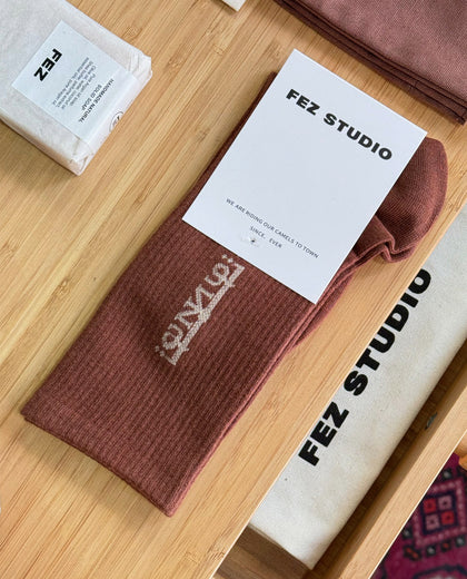 גרבי כותנה איכותיים עם אריגת ז'אקרד של הלוגו FEZ בצידי הגרב.