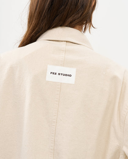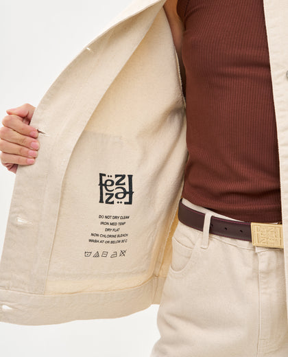 ז'קט ג'ינס מס 3 של FEZ הוא אחד הפריטים האיקוניים והמזוהים ביותר עם המותג. הז'קט מקבל בכל עונה שטיפות ודיטיילים חדשים. הז'קט יושב על הציר בין קימוני לז'קט עבודה. גזרה ישרה, שרוולים רחבים וכיסים קדמיים. הז'קט גרסת האביב עשוי גם הוא 100% כותנה גולמית איכותית, ומעט דק יותר. לז'קט פאץ' לוגו המותג תפור בגב.