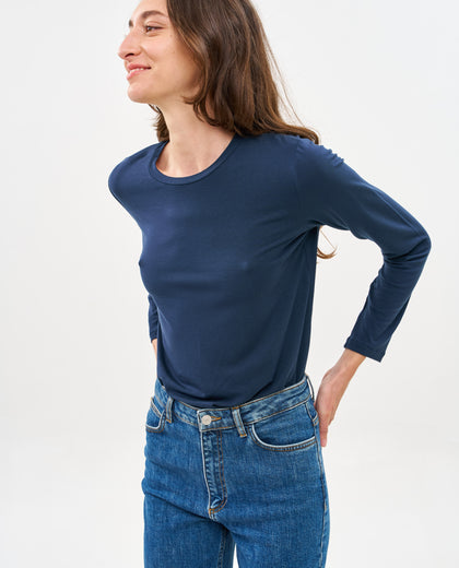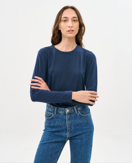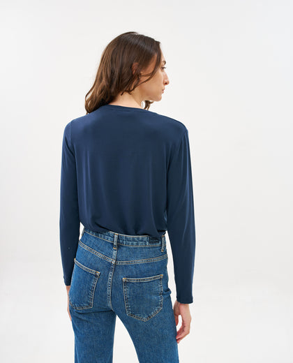 חולצת שרול ארוך בגזרה משוחררת מבד טנסל נעים נעים שאי אפשר להוריד. החולצה מגיעה בשלושה צבעים: שחור, כחול נייבי, ושמנת