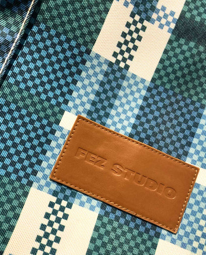 תיק נשיאה של FEZ מותג הבית החדש שלנו. תיק שוק כשמו כן הוא, לוקח השראה מתיקי הפלסטיק הענקיים שכולנו מכירים משווקים מכל העולם, אבל את הפרינט היחודי שעיצבנו, הדפסנו על כותנת קנבס עבה ואיכותית. העונה הוספנו לו פאצ' דמוי עור עם הטבעה של הלוגו וכן כיס פנימי.