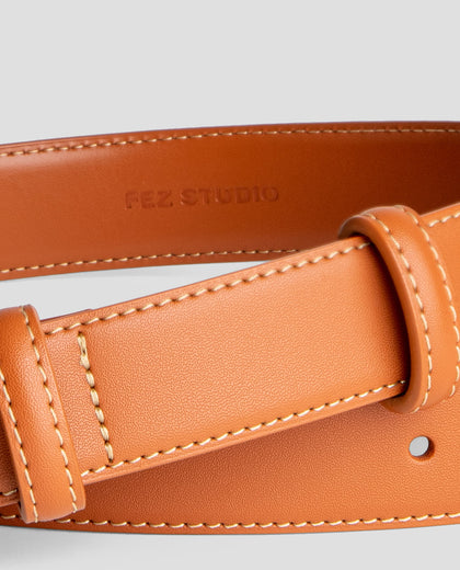 חגורת עור איקונית של מותג הבית FEZ. לכו איתה עם הג'ינס האהוב עליכן ועם כפכפי אצבע או מעל שמלת ערב שחורה. אבזם מוזהב עם הלוגו הכפול, מגיעה עם הטבעה פנימית בתוך תיק כותנה ממותג. רוחב החגורה 2.5 ס"מ