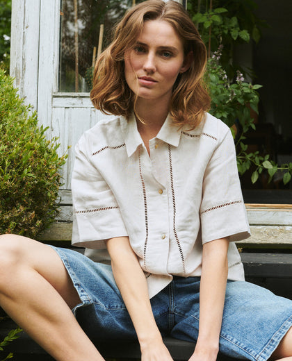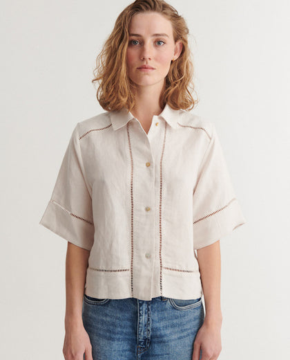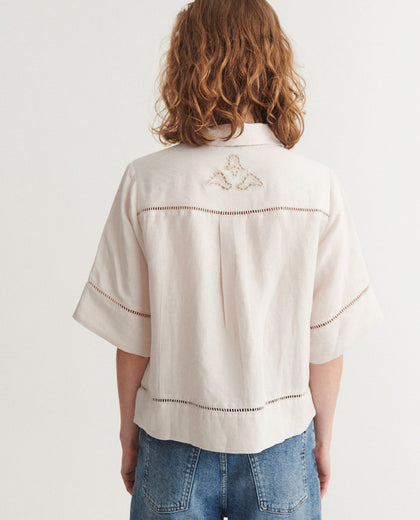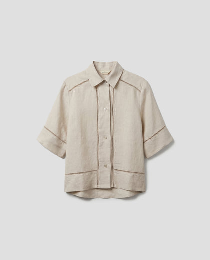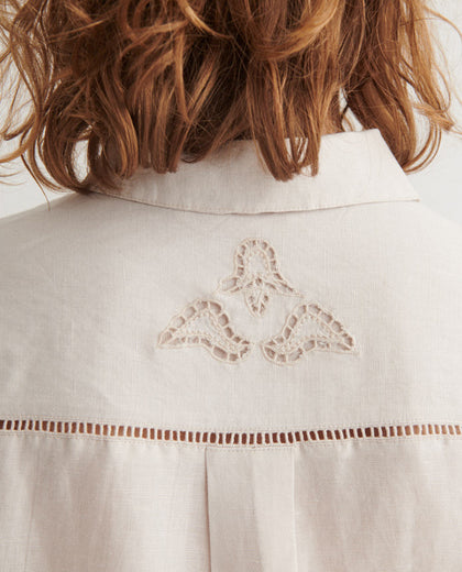 חולצת פשתן מכופתרת בגזרה משוחררת עם גימורים עדינים של תחרה במהדורה מוגבלת