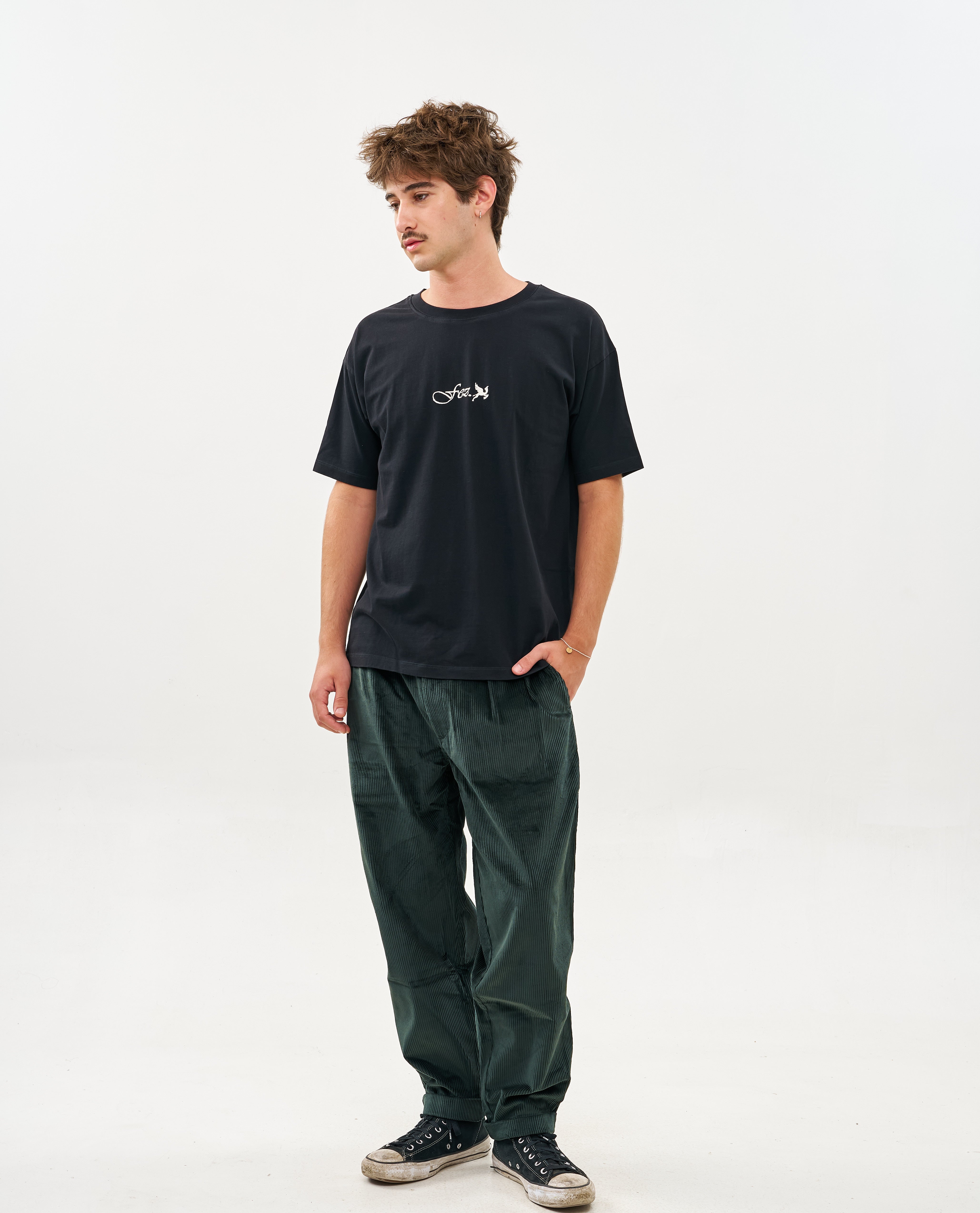 טישרט מתוך הקולקציה החדשה של FEZ, גזרת יוניסקס משוחררת, לוגו של הגמל המעופף רקום מקדימה ולוגו קטן בגב