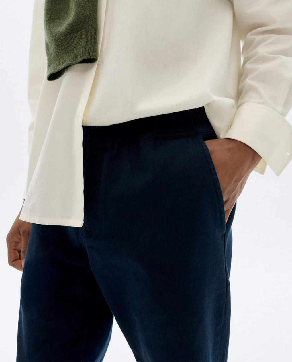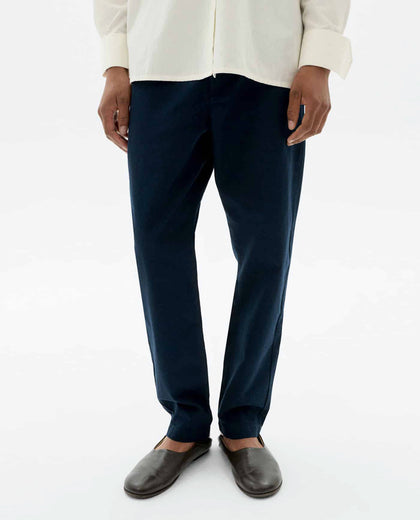 מכנסי צ'ינו בגזרה ישרה עם כיסי צד, סגירה עם כפתור, רוכסן ושרוך פנימי