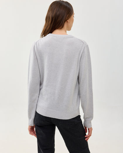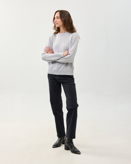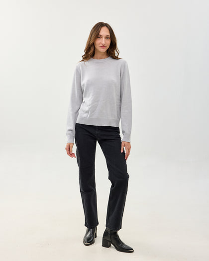 סוודר קלאסי ומשובח עם צווארון עגול, עשוי בלנד של צמר, קשמיר ופולי ממוחזר. רך ואקולוגי. מגיע בשלושה צבעים: בורדו, אפור בהיר, אפור כהה